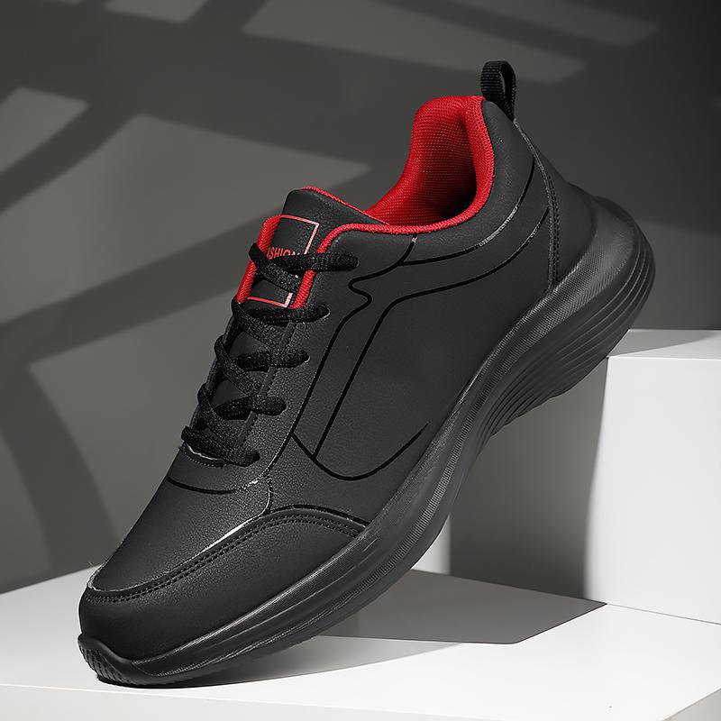 Ces chaussures appartiennent à la catégorie sport et loisirs pour homme. Elles arborent un motif uni noir avec des accents rouges. Ce modèle s'adapte parfaitement à vos activités quotidiennes ou sportives.