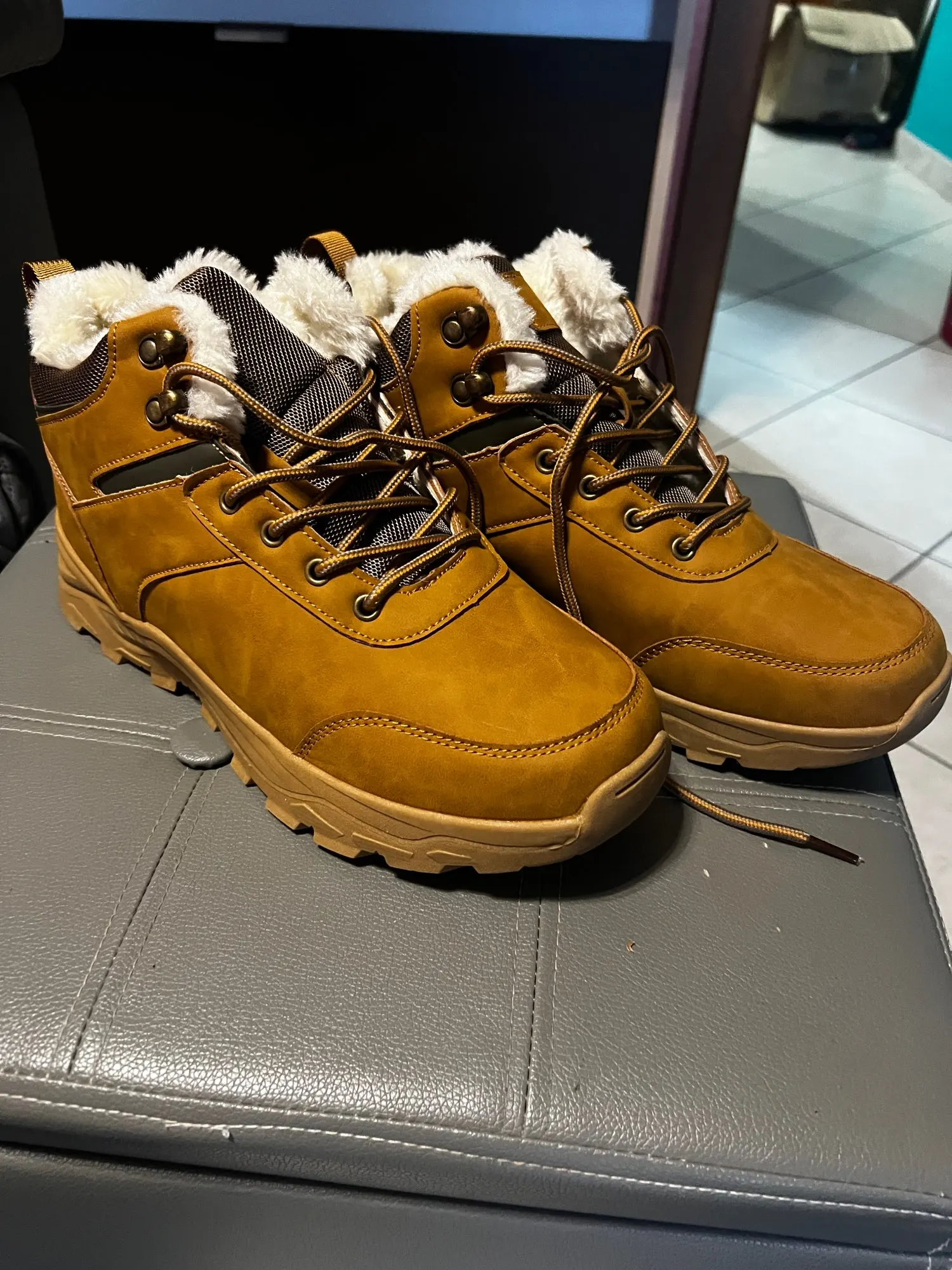 Super. Les chaussures ont de la fourrure à l'intérieur, un laçage facile et rapide (crochets en acier pour les deux dernières boucles). Mes pieds seront au chaud cet hiver. Livraison rapide. Recommandé.
